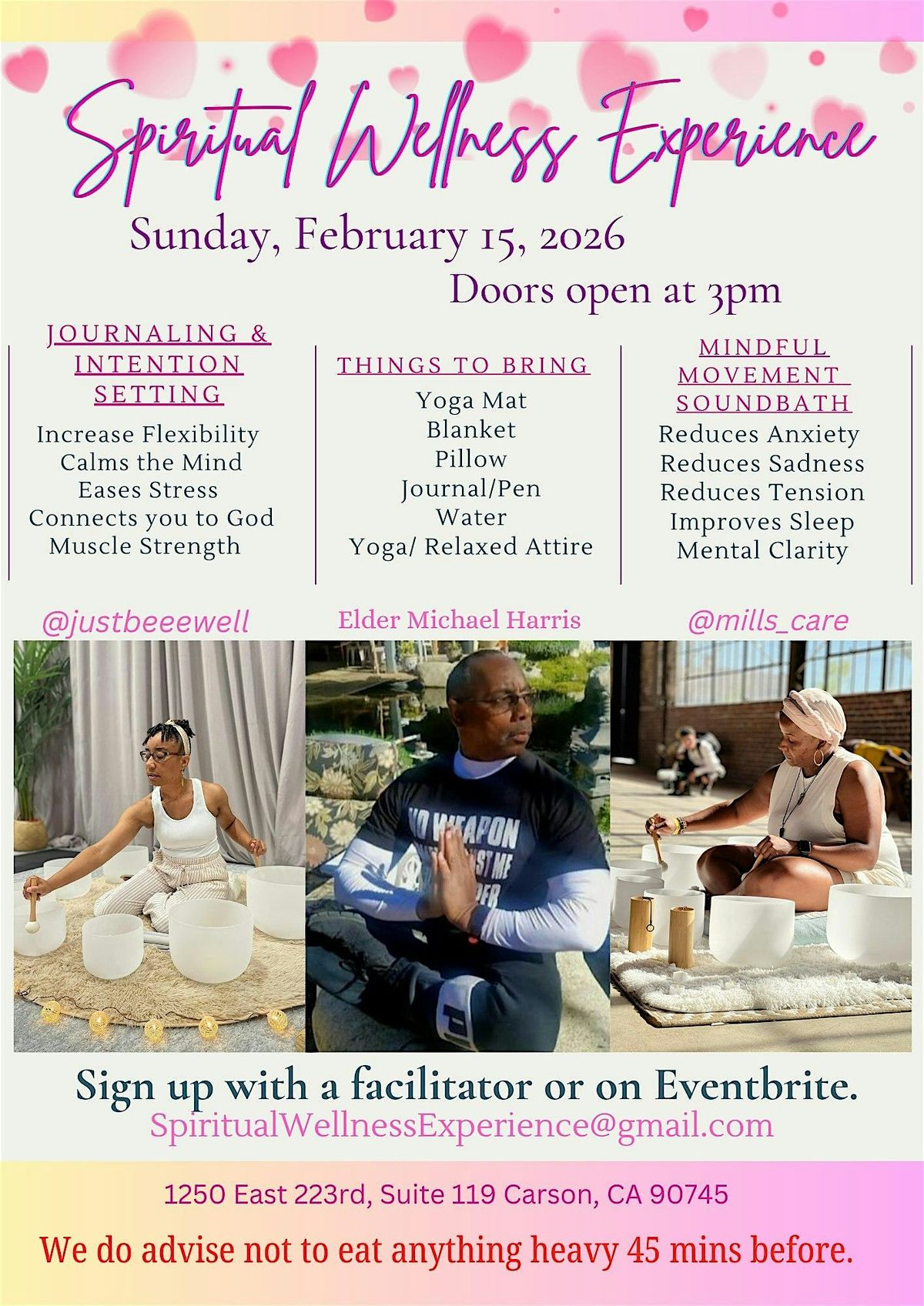 Welcome to the Spiritual Wellness Experience: The Love Edition happening at Metropolitian Church-Christ on February 15, 2026 at 3:00 PM (Pacific Time). Join us for a day filled with love, peace, and spiritual growth. This event is designed to help you nurture your soul and connect with like-minded individuals. Let's spread love and positivity together. See you there!
