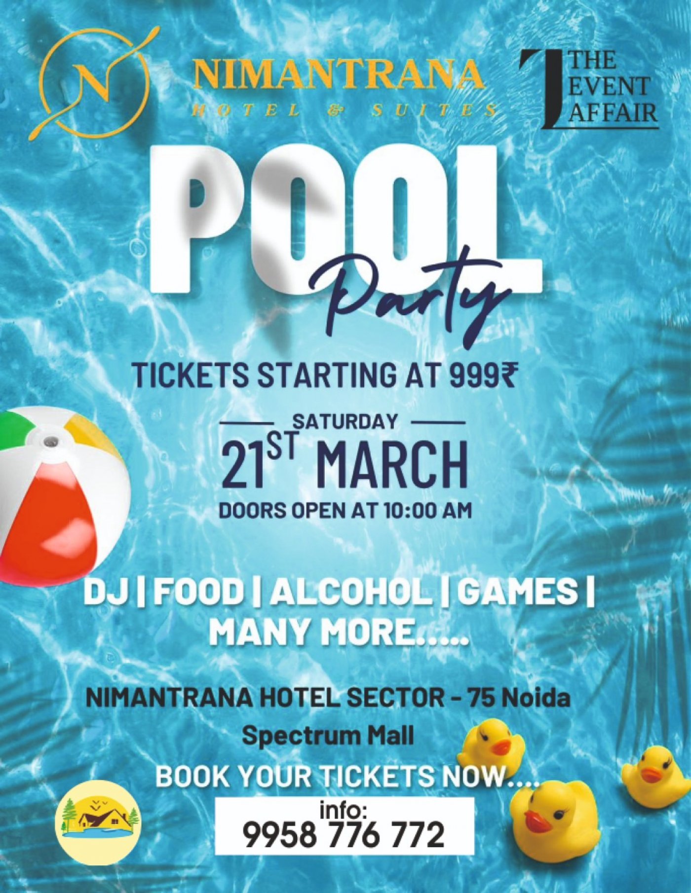 Join us for an unforgettable Pool Party at Nimintran Hotel inside Spectrum Metro Mall, Sector 75.