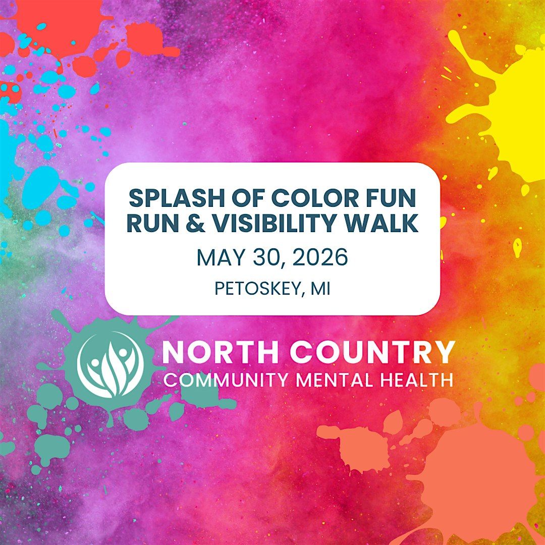 Join North Country Community Mental Health in Petoskey for the 26th Annual Splash of Color Fun Run & Visibility Walk for Mental Health Awareness. The Fun Run course goes along the Bear River with colorful checkpoints! There will simultaneously be a Visibility Walk for Mental Health Awareness for anyone not running. All proceeds from the event are donated to our Client Special Needs Fund, helping our clients achieve their treatment goals!