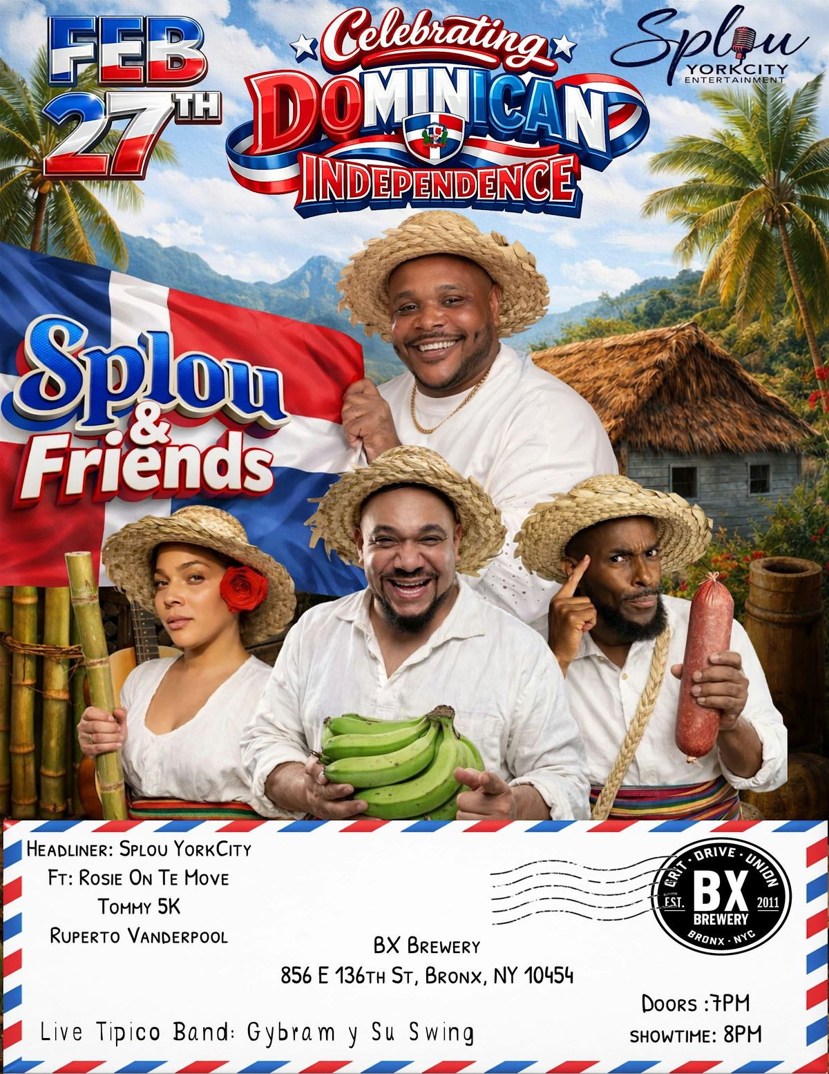 Splou & Friends celebrates Dominican Independence Day Feb 27 with comedy, music, and culture at the Bronx Brewery.About this Event