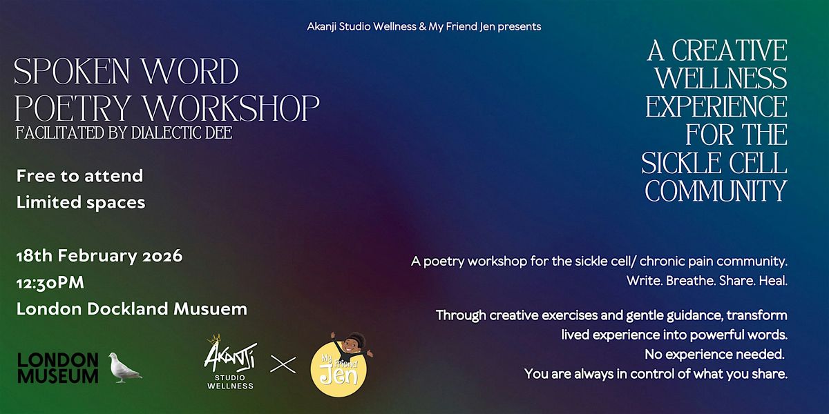 Akanji Studio Wellness and My Friend Jen present a spoken word poetry workshop created for people living with sickle cell and chronic pain.