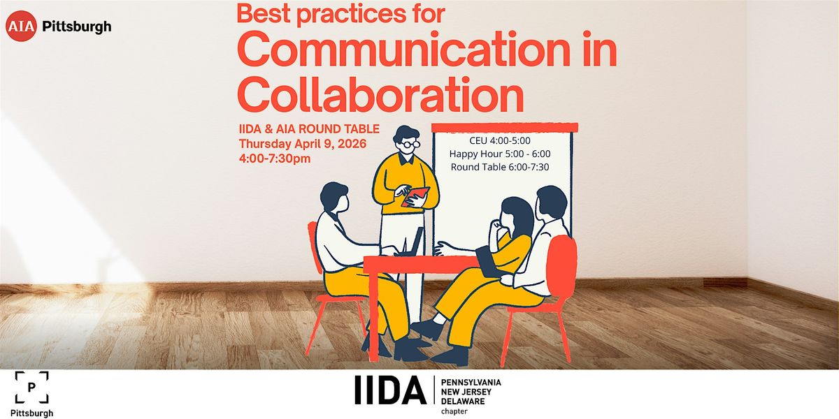 Join IIDA Pennsylvania, New Jersey, and Delaware Chapter, and AIA Pittsburgh for our first joint program. This afternoon will feature a chance to gain CEU's, network with your peers across the design sector, and hear from a round table panel about how to achieve Best practices for Communication in Collaboration. The panel will feature individuals from Architecture, Interiors, Construction, and Development. Your ticket also gets your heavy appetizers and drinks.
