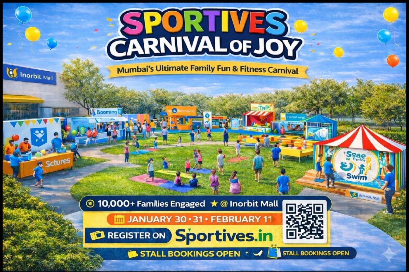 Hosted at Inorbit Mall, Malad West (P1 Area), this carnival brings together sports, games, entertainment, exhibitions, and exciting activities—all under one roof!