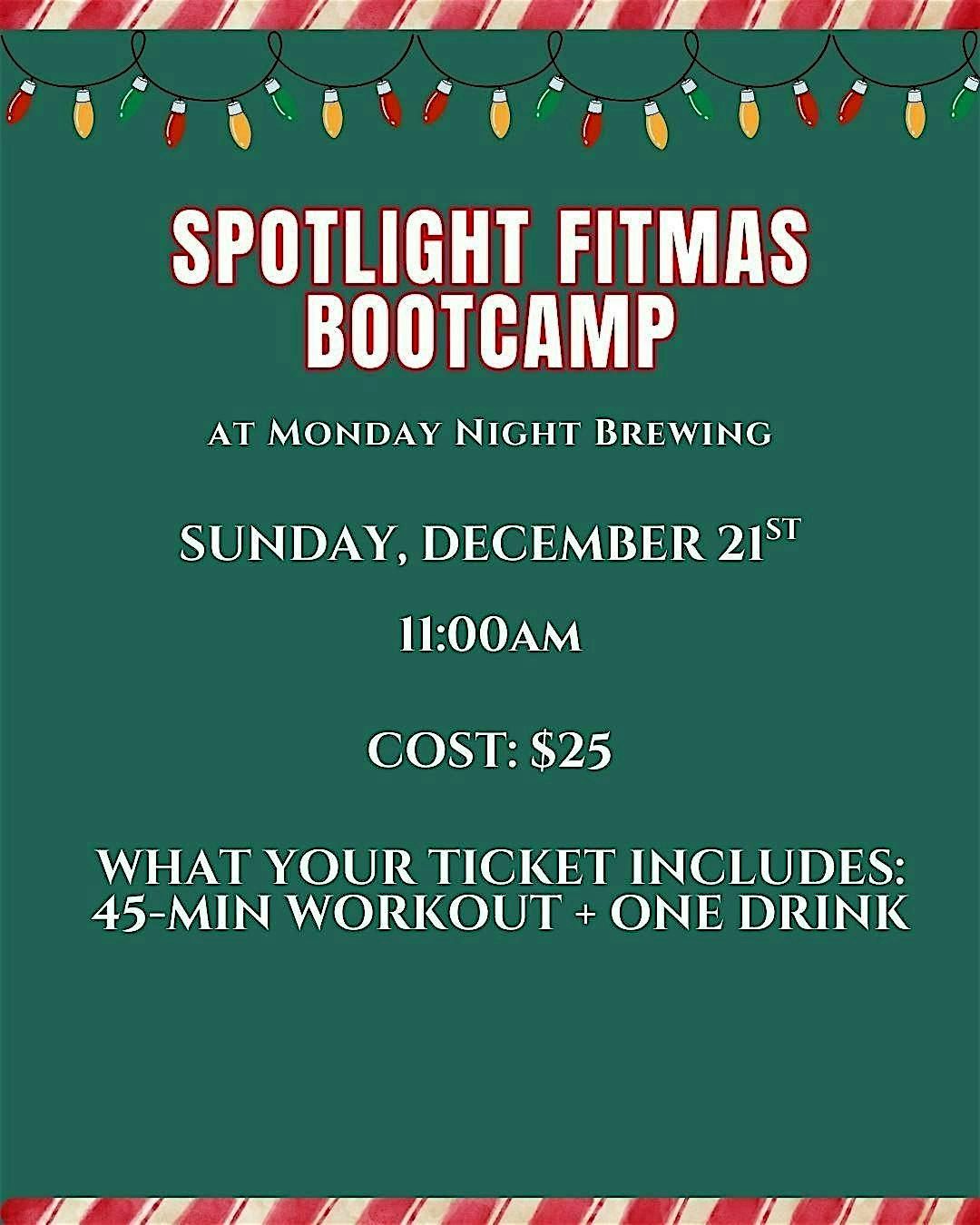 Join us for a 45-min Fitmas Bootcamp at Monday Night Brewing! Bring a mat, sweat, sip, and mingle. First drink included!