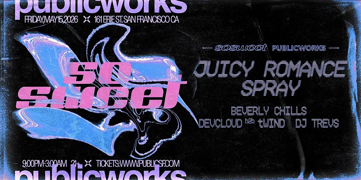 SO SWEET is gassed to take over the main stage at Public Work Featuring headliners SPRAY and JUICY ROMANCE.