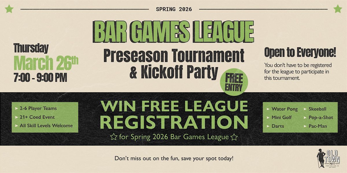 Spring 2026 - Bar Games League Preseason Tournament & Kickoff Party