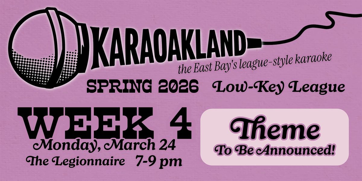 🎠KaraOakland Low-Key League Week 4: THEME TO BE ANNOUNCED • March 23rd • The Legionnaire, Oakland • League Play 7–9 PM • Open Karaoke After 9 PM • Free to attend • 21+