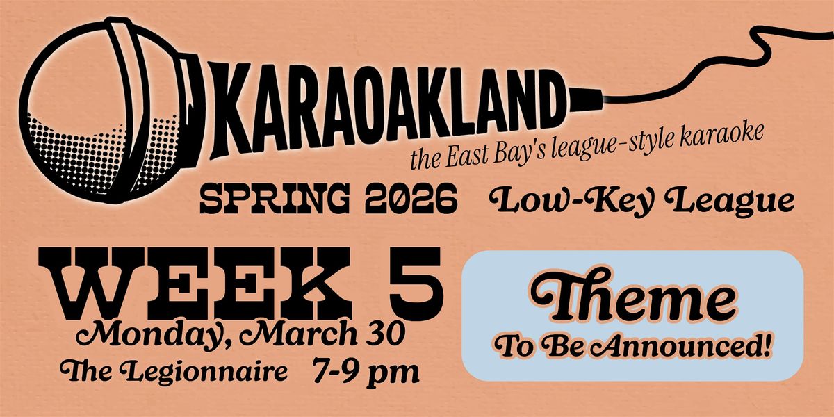 🎠KaraOakland Low-Key League Week 5: THEME TO BE ANNOUNCED • March 30th • The Legionnaire, Oakland • League Play 7–9 PM • Open Karaoke After 9 PM • Free to attend • 21+