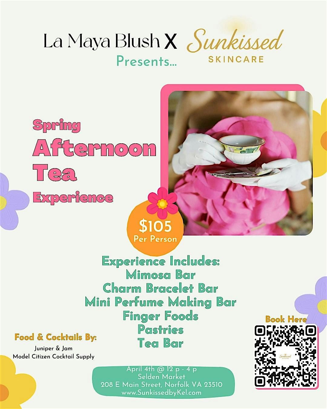 Join La Maya Blush and Sunkissed Skincare for a beautifully curated Spring Afternoon Tea Experience where luxe self-care meets playful, social fun. This immersive event blends elevated tea-party charm with hands-on experiences, delicious bites, and signature cocktails — creating the perfect setting for a memorable day with friends or a feel-good solo escape.
