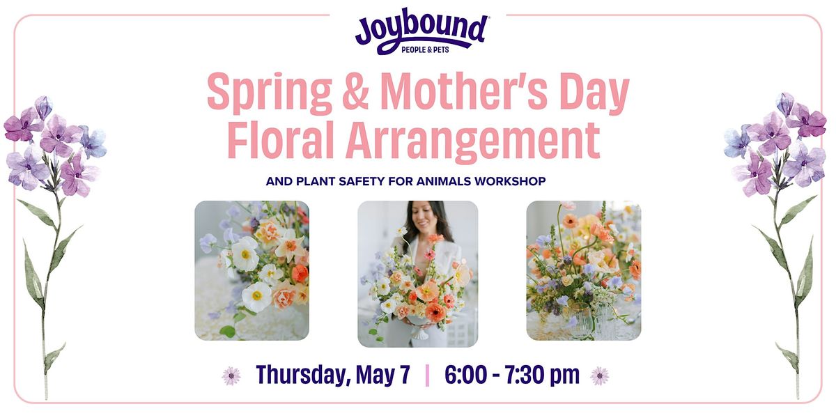 Joybound People & Pets invites you for a Spring & Mother's Day themed Floral Arrangement Workshop with floral artisan Marissa Zoetewey, founder of The Wild Fleur Co.