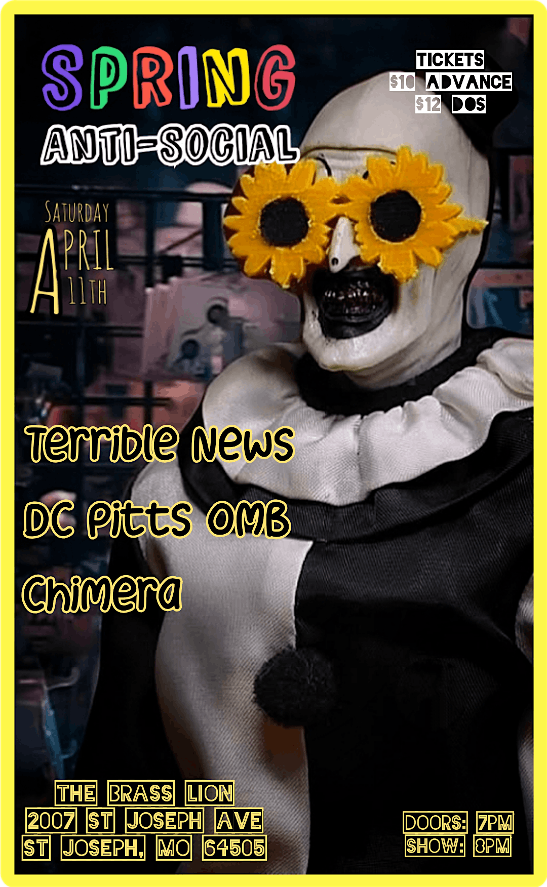 Terrible News, DC Pitts OMB, & Chimera are gonna kick off the Spring at the Brass Lion$10 Advance