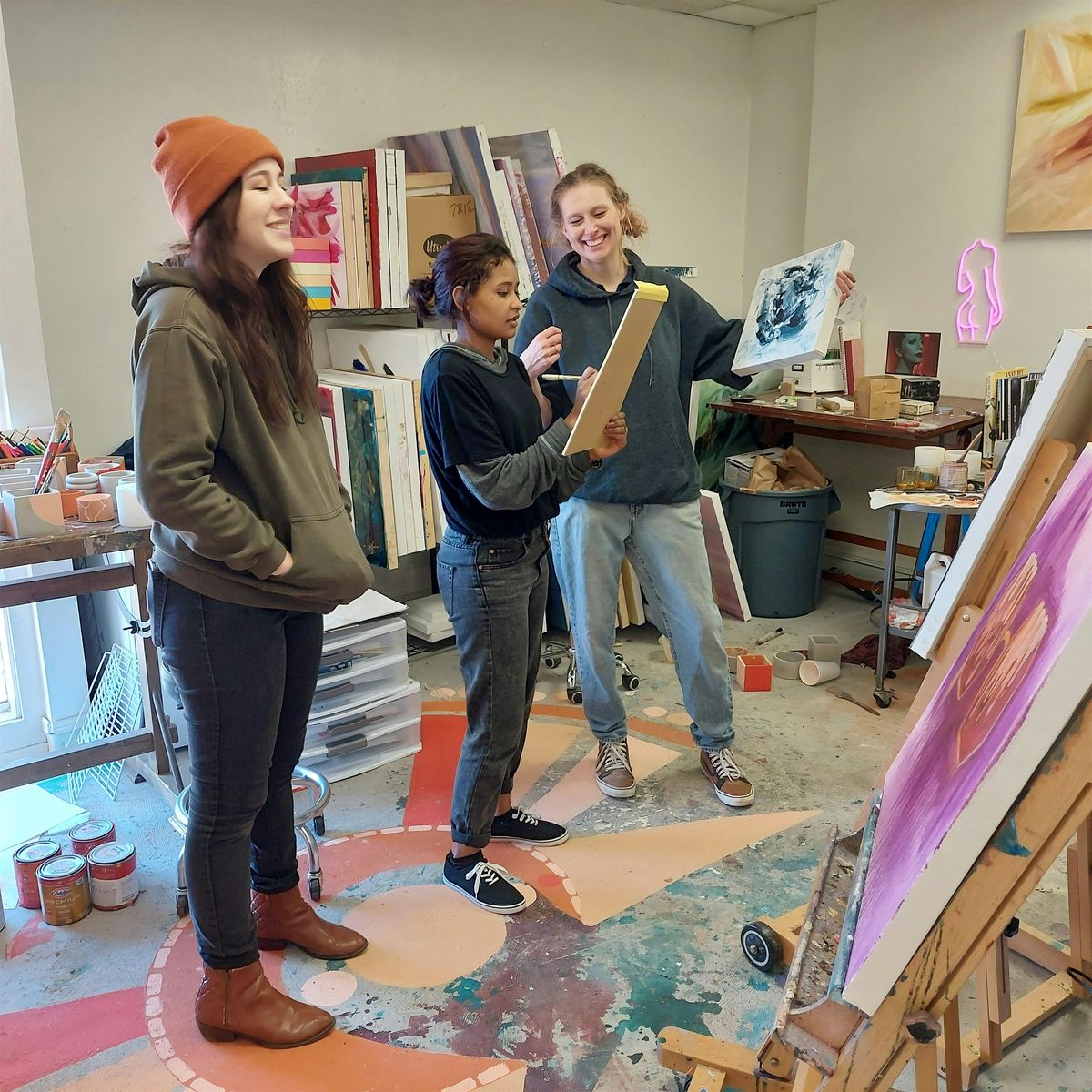 Pick up a stamp passport sheet on arrival and have it stamped by artists across both floors of both buildings to be entered into our raffle drawing for one of several art supply prize baskets!