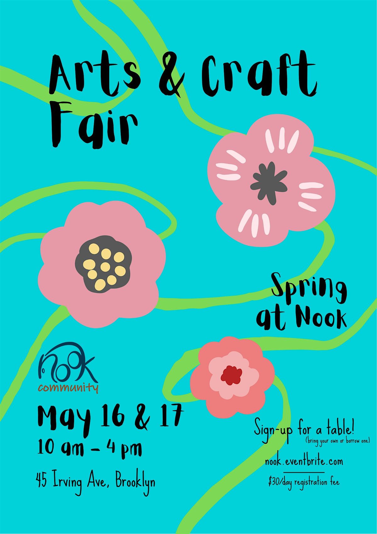 Calling all Brooklyn artists and craftspeople! Register for a booth/table to sell your work. Tables will be set-up on the sidewalk and patio at Nook. Registration is $30/day.