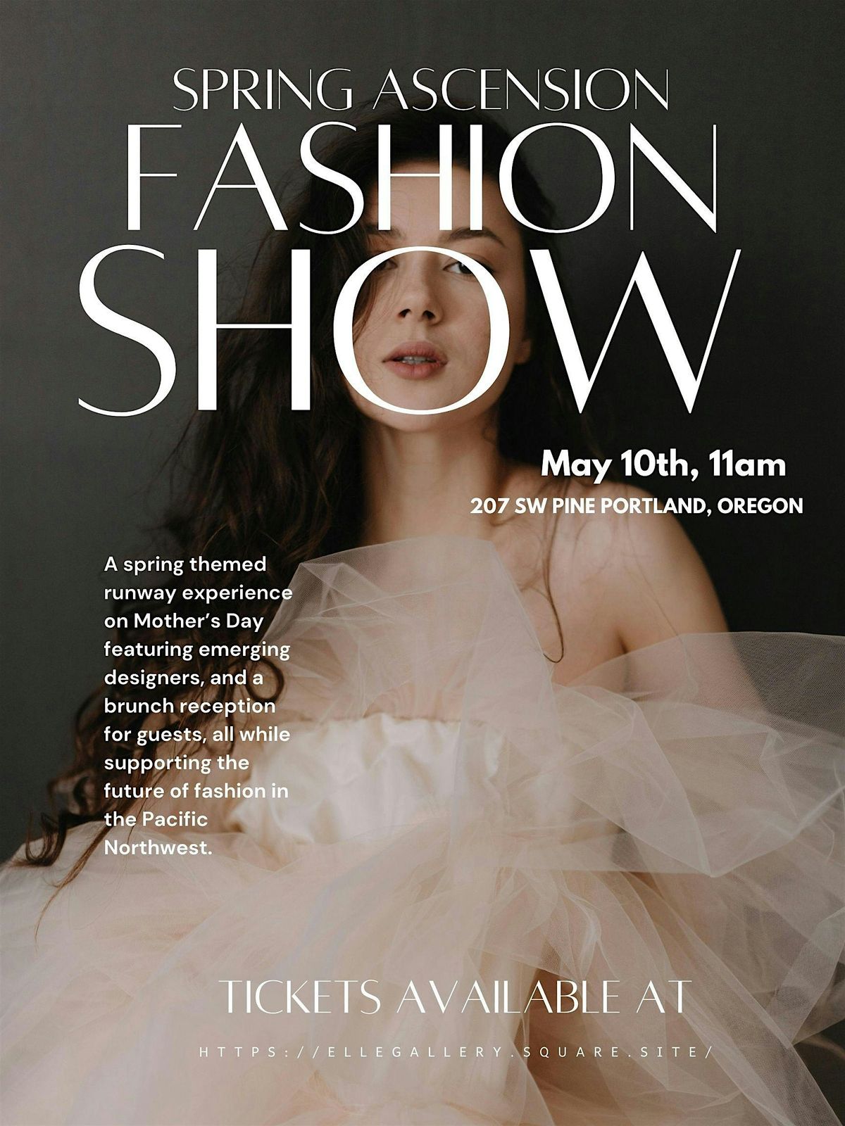 Spring Ascension Fashion Show is a celebration of emerging fashion, creativity, and community in the Pacific Northwest. Taking place on Mother’s Day, May 10th, this special runway event brings together up-and-coming designers, models, and creatives for an inspiring afternoon of fashion at Elle Gallery.