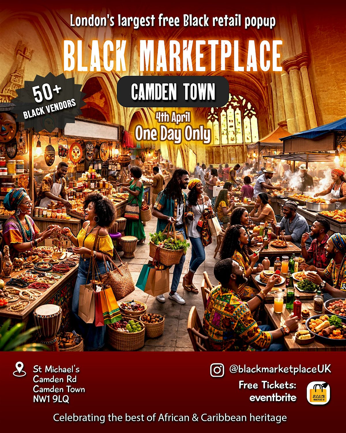 Join us for an unforgettable day celebrating Black excellence, culture, and creativity at the Spring Black Marketplace Popup in the heart of Camden Town!