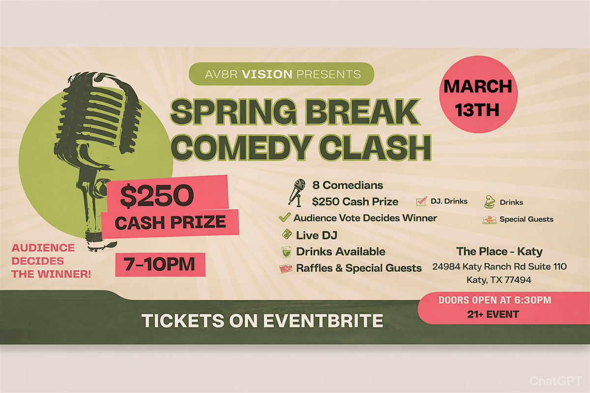 Join us March 13th for 1 night. 8 comedians. $250 cash prize.