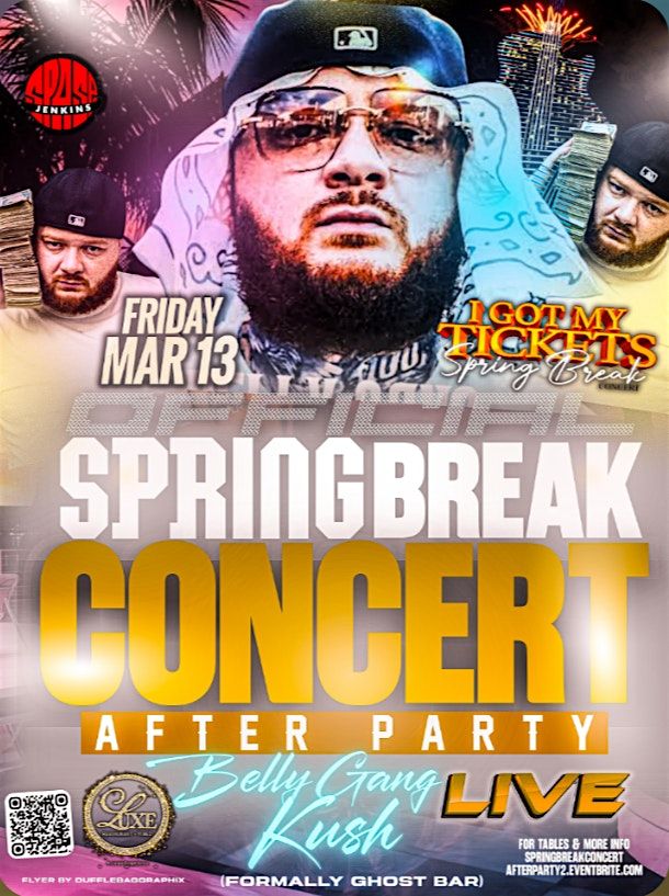 Join us for the "OFFICIAL SPRING BREAK CONCERT AFTERPARTY"!!! Going down at LUXE RESTAURANT & LOUNGE (Formally Ghost Bar) Address: 5450 FL-7. Luxe Restaurant & Lounge is located diretly across from Hardrock Guitar Hotel in Hollywood. Luxe Lounge has recently been renovated and provides Sexy Vibes, Delicious Food Options & Strong Drinks... And right after the big concert @Amerant Bank Arena the Afterparty will be at LUXE and we will have "BELLY GANG KUSH" in the building Performing LIVE!!
