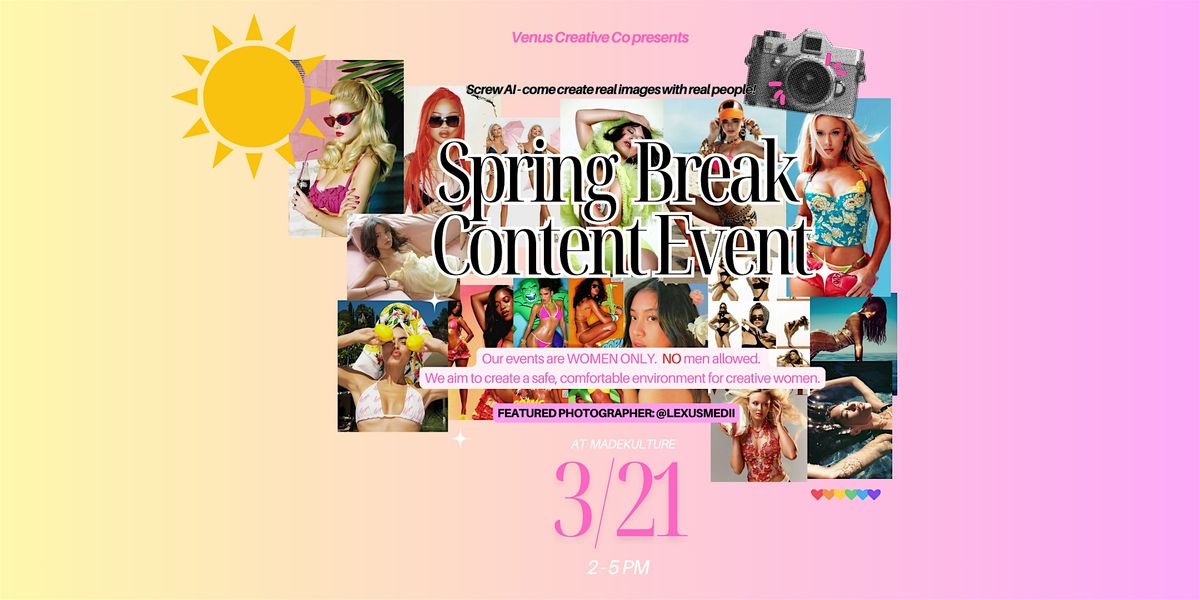 Hey ladies! Join us at MadeKulture on March 21, 2026 at 2:00 PM (Central Time) for a fun and inspiring day made just for women. Whether you're into modeling, photography, content creation or just want to connect with like-minded gals, this event is your spot to shine and share. Don’t miss out on creating quality content, building your portfolio, networking and plenty of creativity. See you there!
