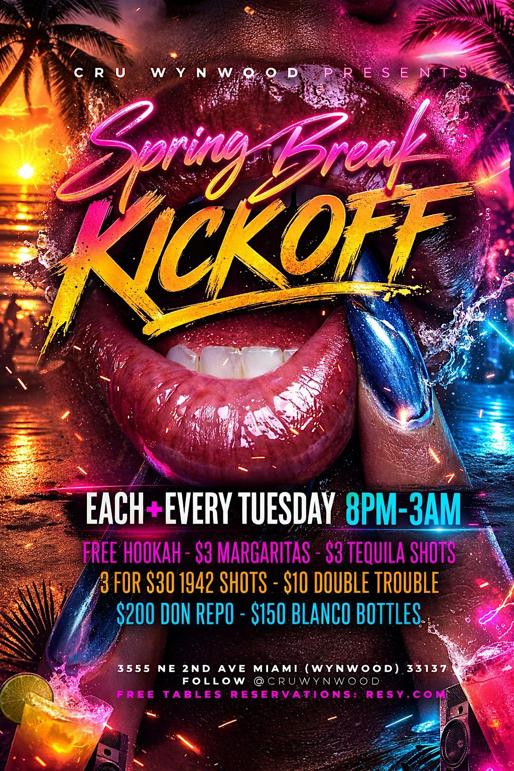 Spring Break is here and CRU Wynwood is turning up every Tuesday night. Enjoy free hookah, $3 margaritas, tequila shotsAbout this Event
