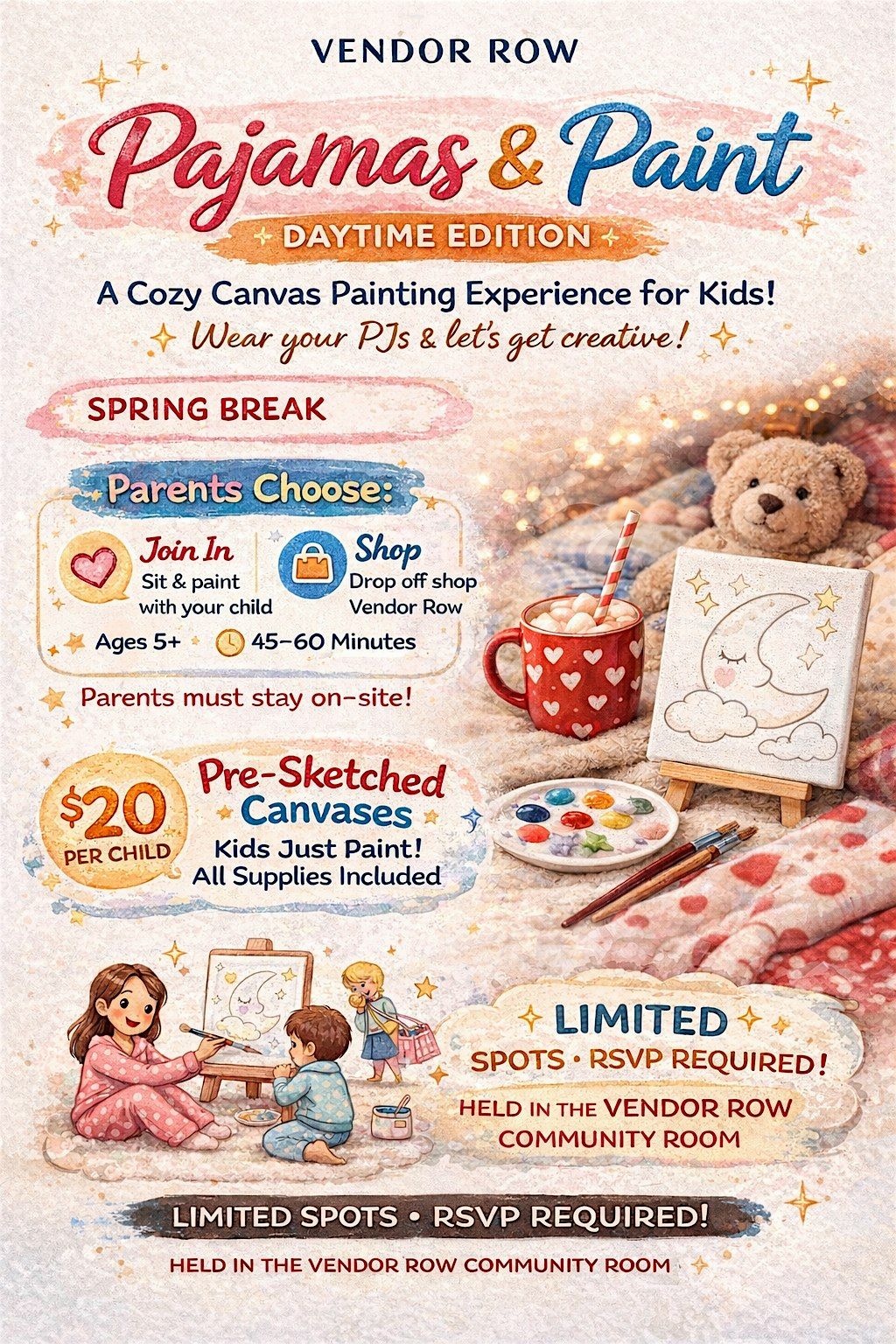 Join us at Vendor Row for our Pajama Paint Party — where creativity meets comfort!