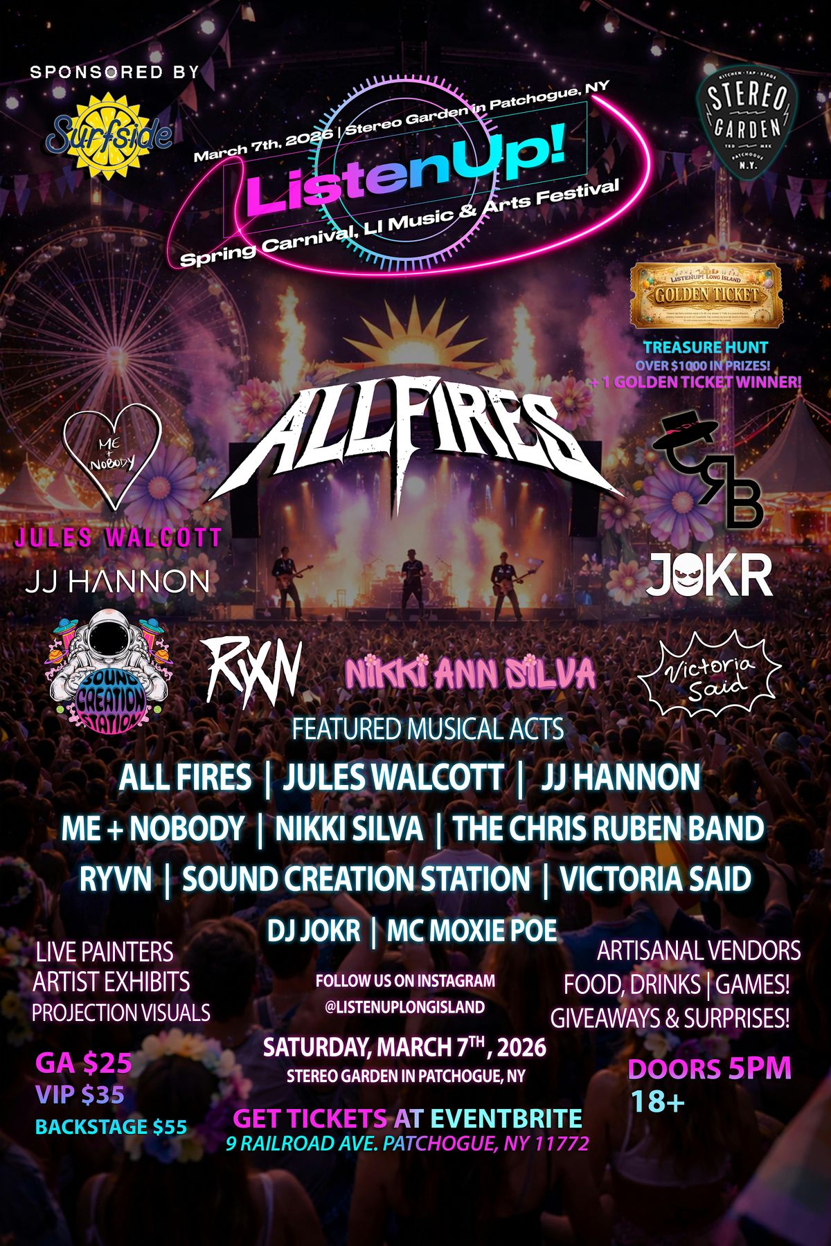 Welcome to ListenUp! Spring Carnival, an immersive indoor music and arts festival designed to shake off winter and kick off spring in full color.