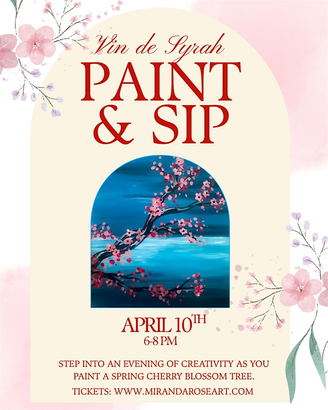 - A guided painting session led by instructor Miranda Rose
