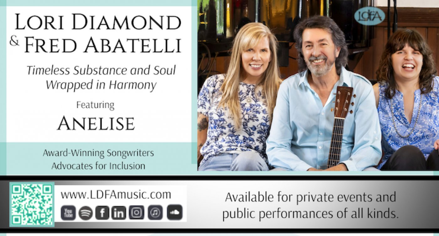 Find yourself enchanted as this favorite local family band shares their soul-stirring songs wrapped in heavenly harmony. Award-winning songwriters Lori Diamond & Fred Abatelli along with their radiant and talented daughter Anelise will be sharing a joyous and memorable evening of connection and inclusion. You’ll enjoy their relatable original songs and the stories behind them. This is an uplifting,