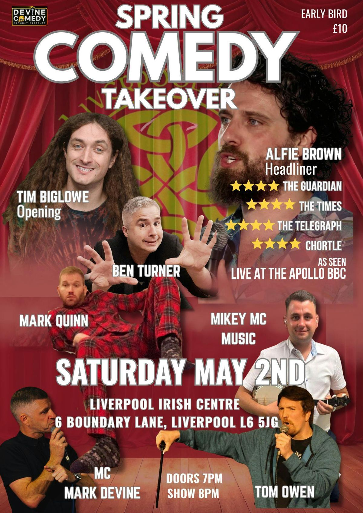 Start you May Bank Holiday at Liverpool Irish Centre for a memorable evening of stand-up Comedy & Live Music.Headliner Alfie Brown