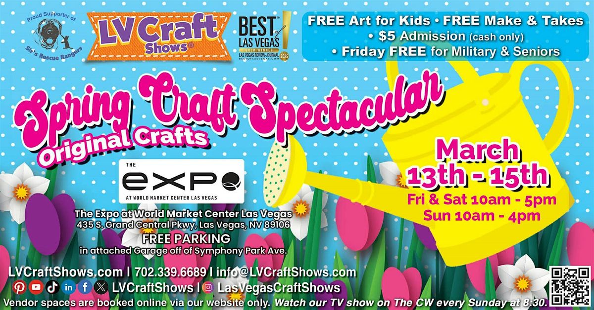 Grab your shopping buddies! The Spring Craft Spectacular at The Expo at World Market Center! Get your Free tickets NOW as they are limited. Enjoy 3 AMAZING days of shopping! This Indoor event is side by side with the big Home Improvement & Backyard Expo. There will also be a two-day Children's Learning & Fun Festival next to us on Saturday & Sunday (separate entrance). Located downtown at 435 Grand Central Parkway. Friday & Saturday 10am - 5pm Sunday 10am - 4pm. FREE Make & Take sessions. Free Bingo Games. Admission:$5 cash at the door day of event. Free Friday for Seniors and Military. Children 17 & under FREE. FREE admission with tickets at Evenbrite (Limited qty) Please print or show on the phone. Free PARKING!! Enter the attached garage off of Symphony Park Ave.