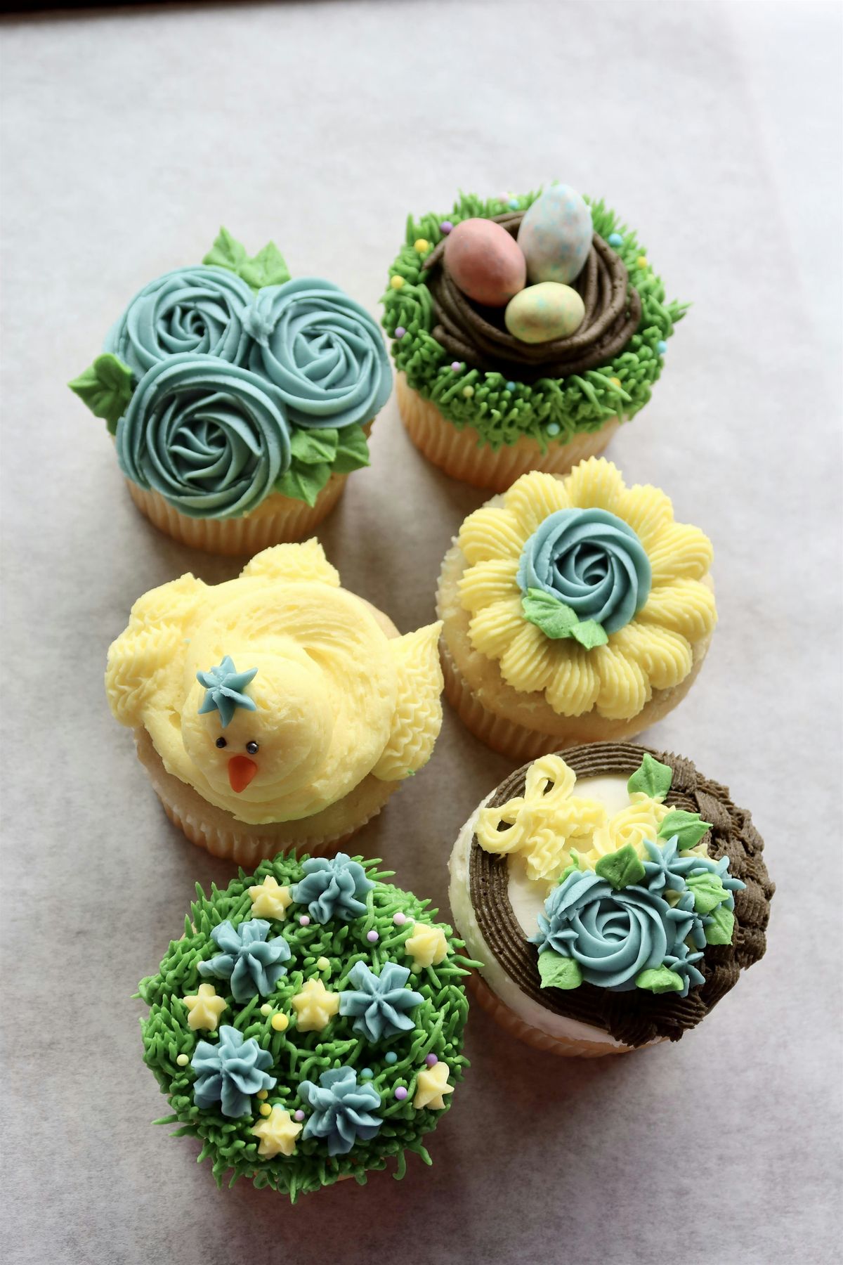- 6 vanilla cupcakes to decorate and take home box
