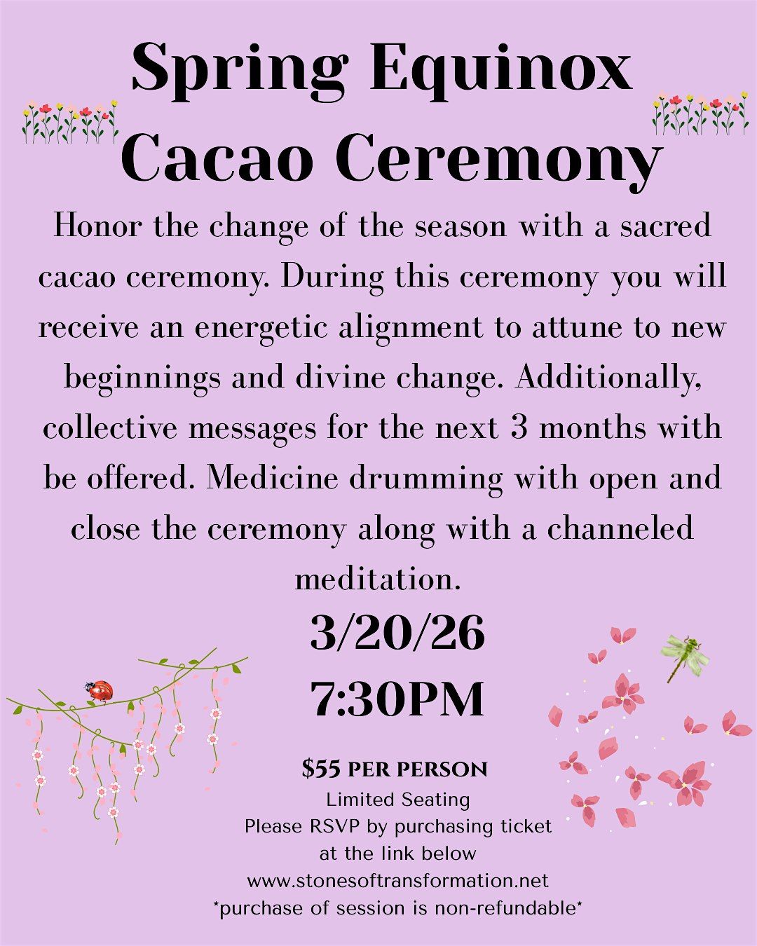 Join this cacao ceremony for clarity, rejuvenation, and an honoring of the change of the seasons.About this Event