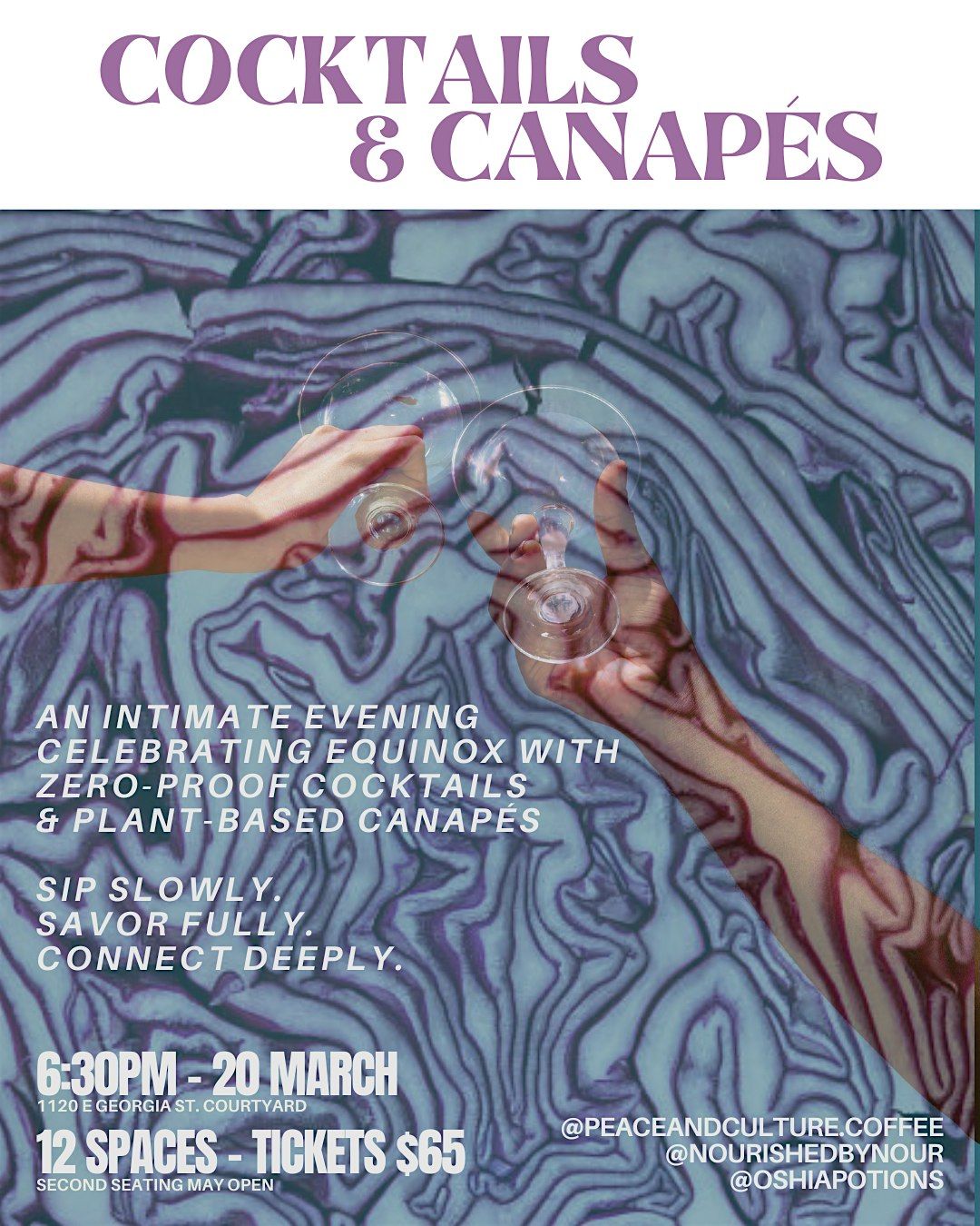 On the evening of the Spring Equinox, join plant-based chef Nourished by Nour and zero-proof cocktail maker Oshia Potions for a thoughtfully curated celebration of renewal, light and local abundance.