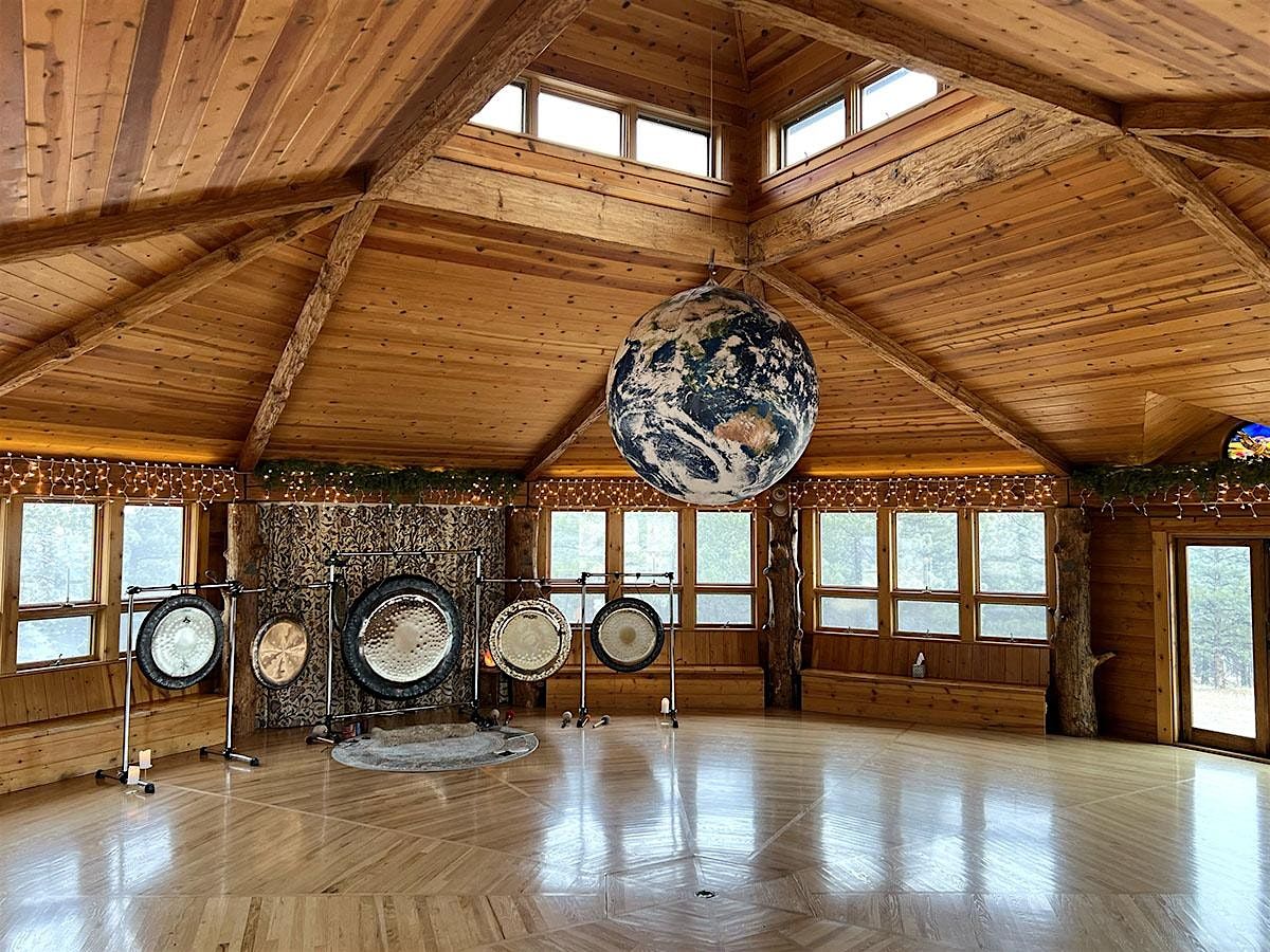 Release, rebalance and replenish in the healing vibrations of six booming gongs. The 50” Paiste Symphonic, 36” Paiste Brilliant, 34” Vintage Paiste, 32” Paiste Symphonic, 28” Paite Bronze No. 9 and 21” Gongland Infinity Gongs will resonate in the dodecagon of the sacred StarHouse. Allow the vibrations of the gongs to release emotional blocks, open energetic channels and rebalance the nervous system as you relax and recharge.