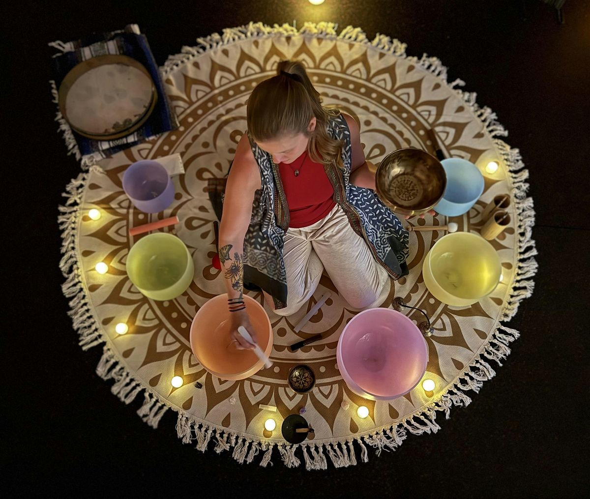 ✨You’ll then be guided into meditation while surrounded by the intentional sounds of crystal singing bowls, Himalayan bowls, chimes, an ocean drum, and more.