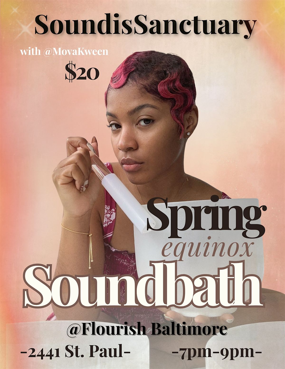 Join us for an in-person Spring Equinox SoundBath experience! Immerse yourself in soothing sounds and vibrations of crystal singing bowls, vocal tones, and more that celebrate the arrival of spring. It's a perfect way to relax, reset, and recharge your energy as the season changes. Bring a mat, get comfy, and let the healing tones wash over you.