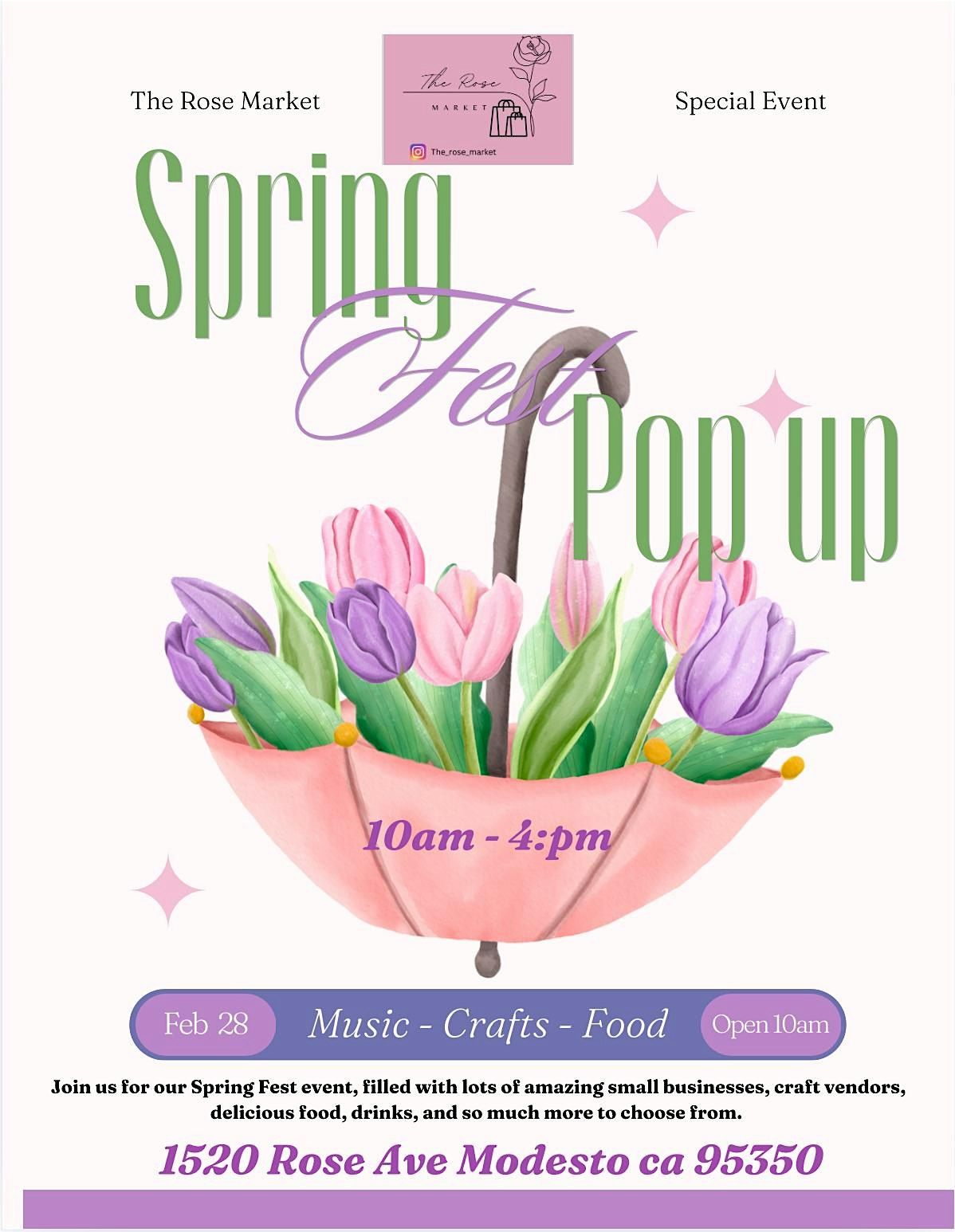 Join us at our Spring Fest Pop Up Market. Many amazing artisan small businesses, crafts, food, drinks and so much more! See you there!