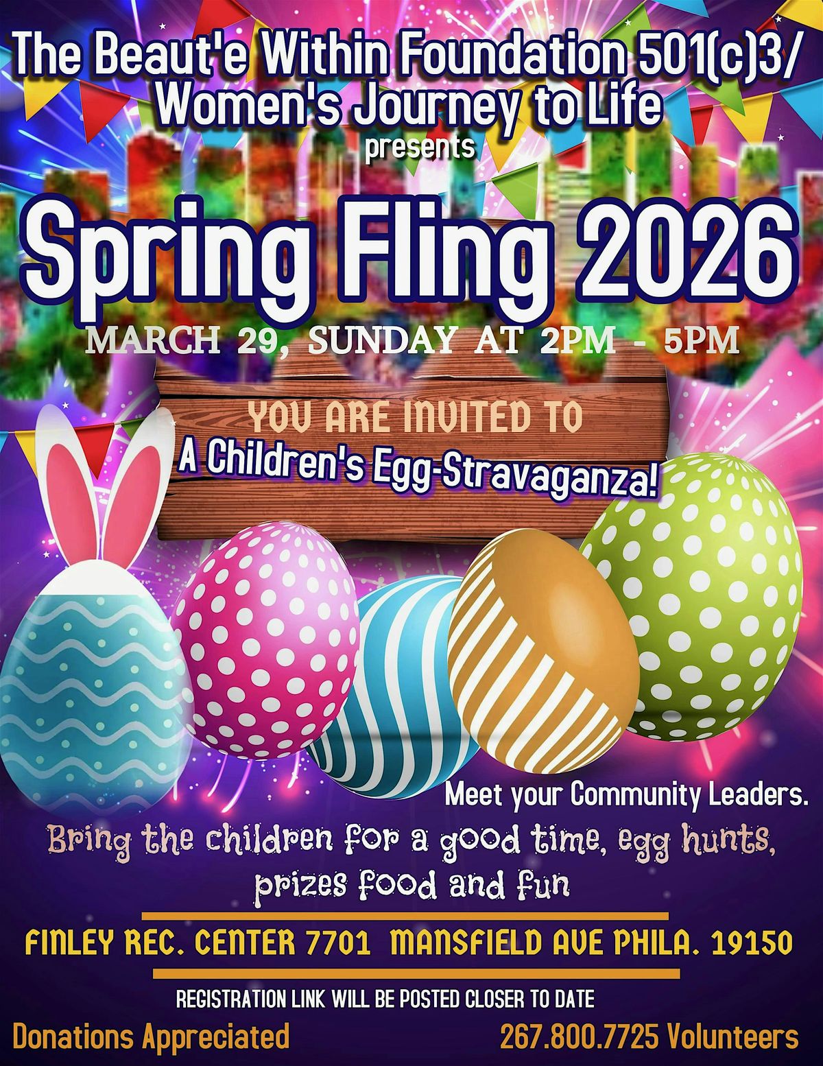 Join us for a fun-filled Spring Fling at Finley Recreation Center, featuring an exciting Easter Egg Hunt, delicious snacks, and plenty of games for kids to enjoy! Children can get creative with arts and crafts, participate in fun activities, and celebrate the season in a lively and festive atmosphere. Don’t miss out on this wonderful community event designed for families to make lasting memories! 🌸🐰🎨🥚✨