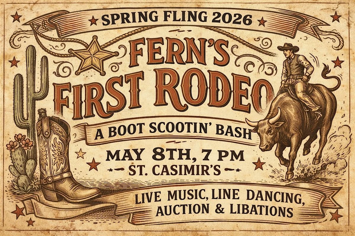 Join us at St. Casimir's for the annual Fern parents bash, gone country! Featuring live country music, line dancing, tasty snacks & drinks and after the hoedown, there will be a DJ playing all the hits - good times for everyone! There will also be a silent auction, helping raise money for Fern's library & other school enrichment projects. This in-person event is the perfect opportunity to let loose and have a great time with your friends and neighbours, and raise funds for Fern. Don't miss out on the chance to make memories that will last a lifetime. Book your sitters, mark your calendars and get ready for this year's Spring Fling!