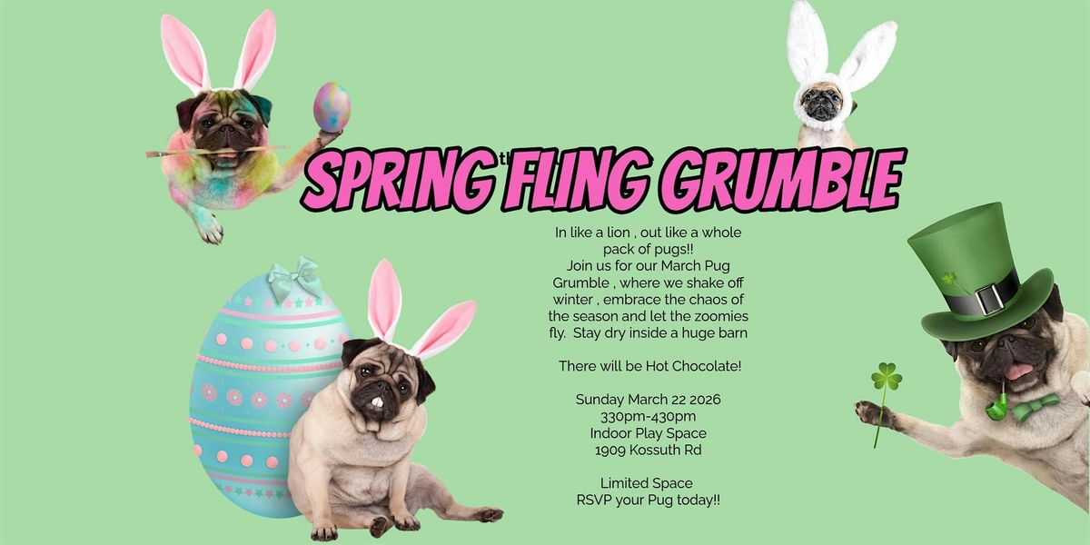 Join us for our March Pug Grumble , where we shake off winter , embrace the chaos of the season and let the zoomies fly. Stay dry inside a huge barn
