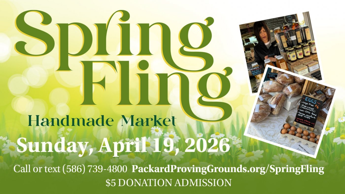 Spring Fling Handmade Market offers a relaxed, community-focused shopping experience while supporting local small businesses and creators. Admission is a $5 donation, with proceeds directly supporting the preservation and restoration of the Packard Proving Grounds Historic Site.