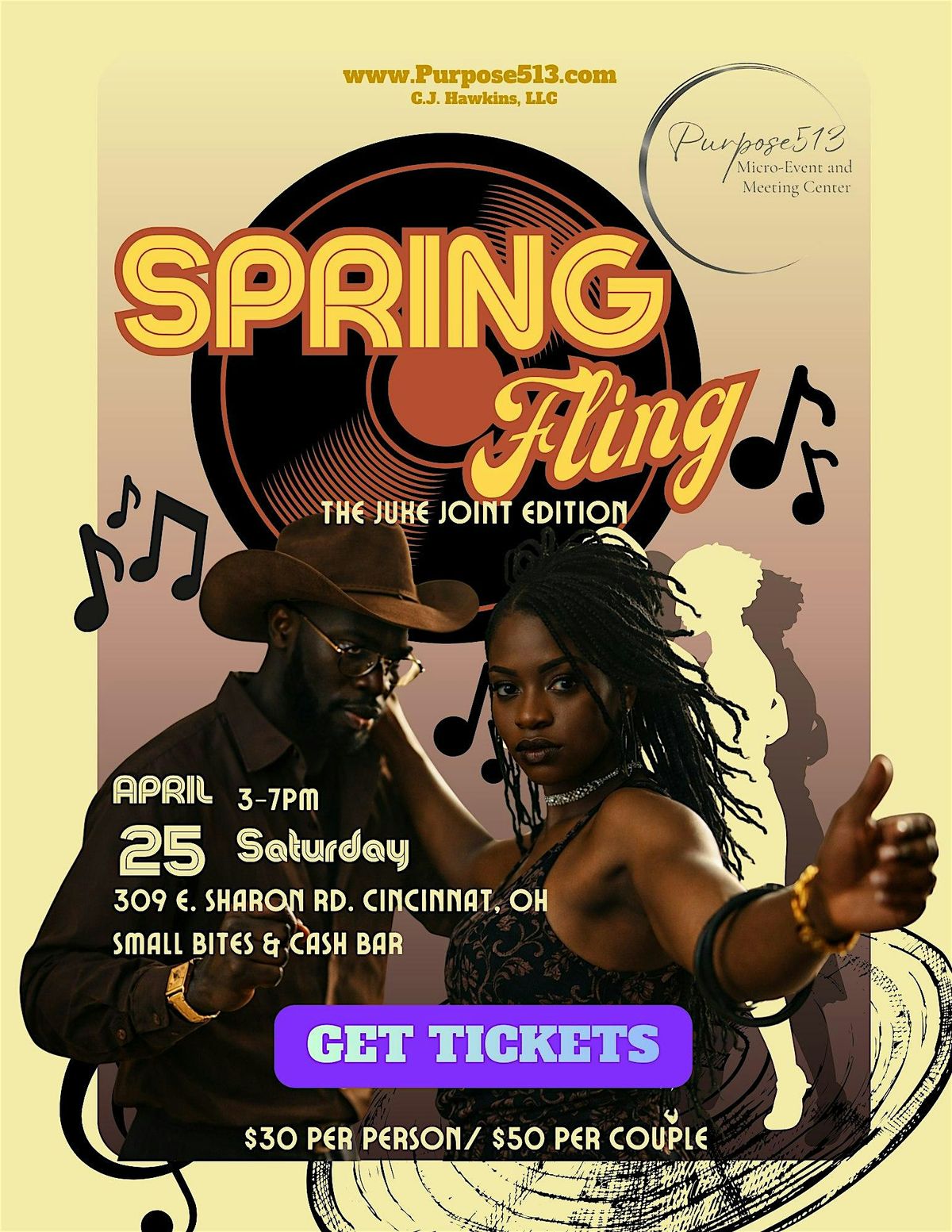 Bring the style. Bring the swagger. Bring the grown-folk energy. This new Spring Fling is more than a party; it is an intentional cultural experience; a C.J. Hawkins and Purpose513 Collaboration!