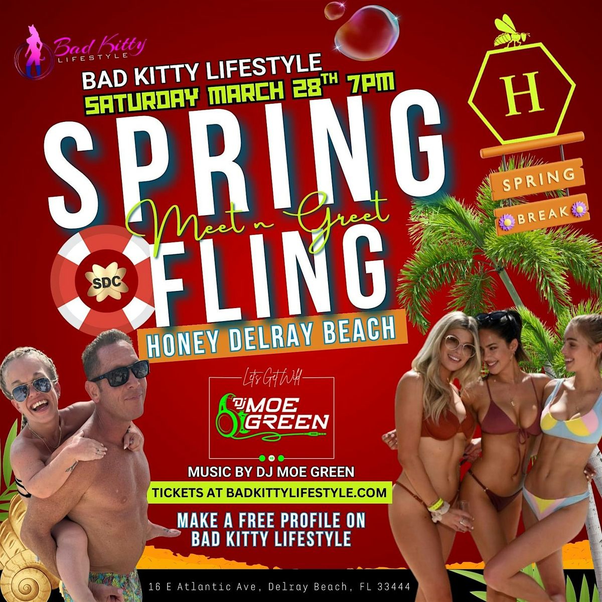 Its our monthly Meet n Greet at Honey Delray Beach Saturday March 28th. Featuring music by DJ Moe Green and lots of sexy couples. Spring is in the air and we encourage all our ladies to wear small sexy sundresses and the fellas to wear Hawaiian shirts. Music by our Resident DJ Moe Green playing a sexy blend of music to get us all in the mood for flirting and dancing. We encourge all guests to make a free profile or purchase a premium membership on Badkittylifestye dot com for vetting purposese.