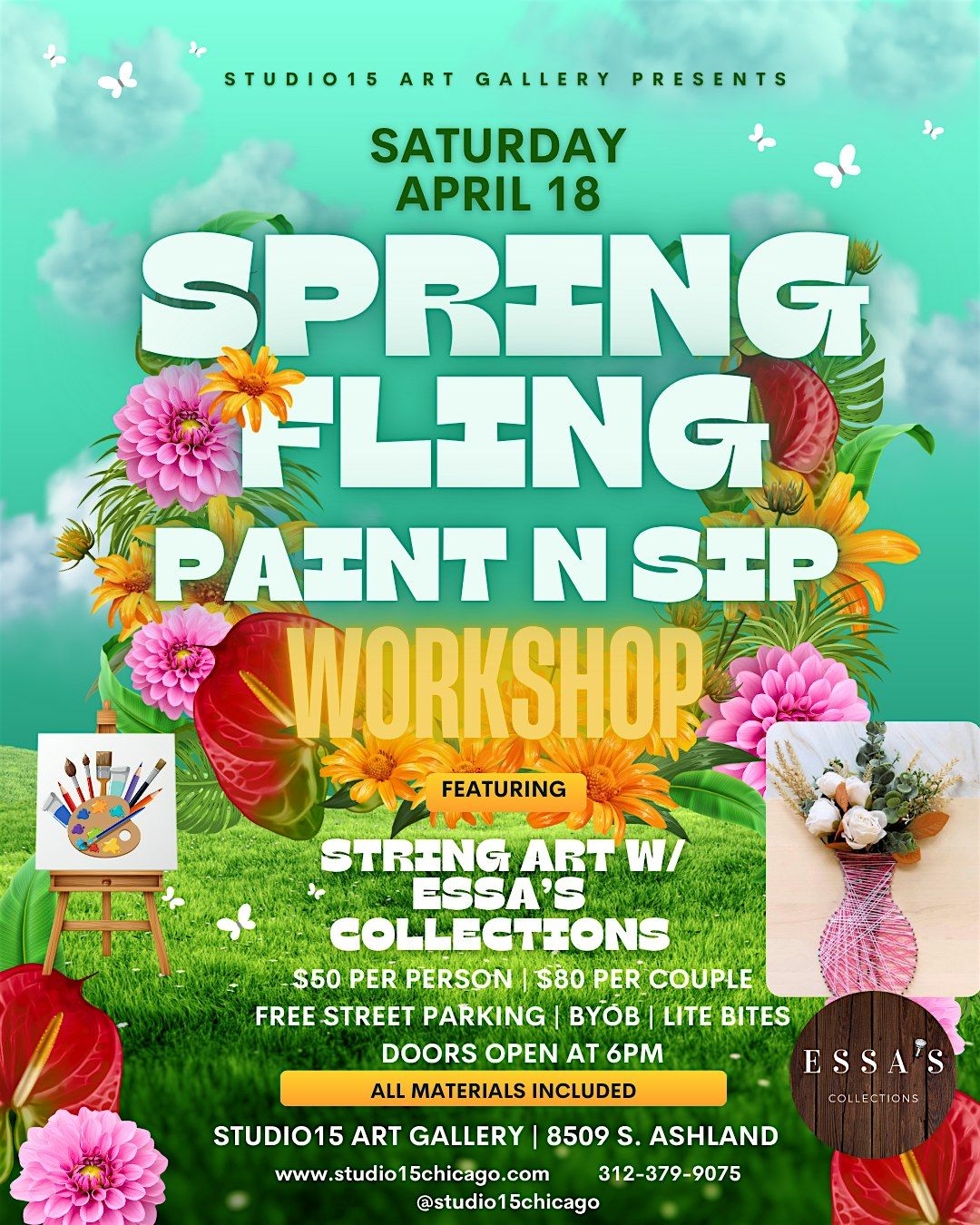 Celebrate the season with creativity, community, and good vibes at Studio15 Art Gallery’s Spring Fling Paint N Sip Workshop.