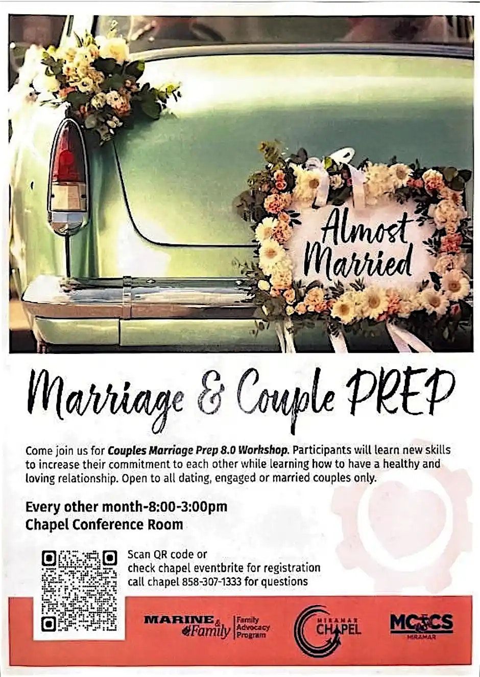 - Who can attend: Anyone getting married, already married, or in a committed dating relationship. (Only couples should be present, you may not attend alone.)