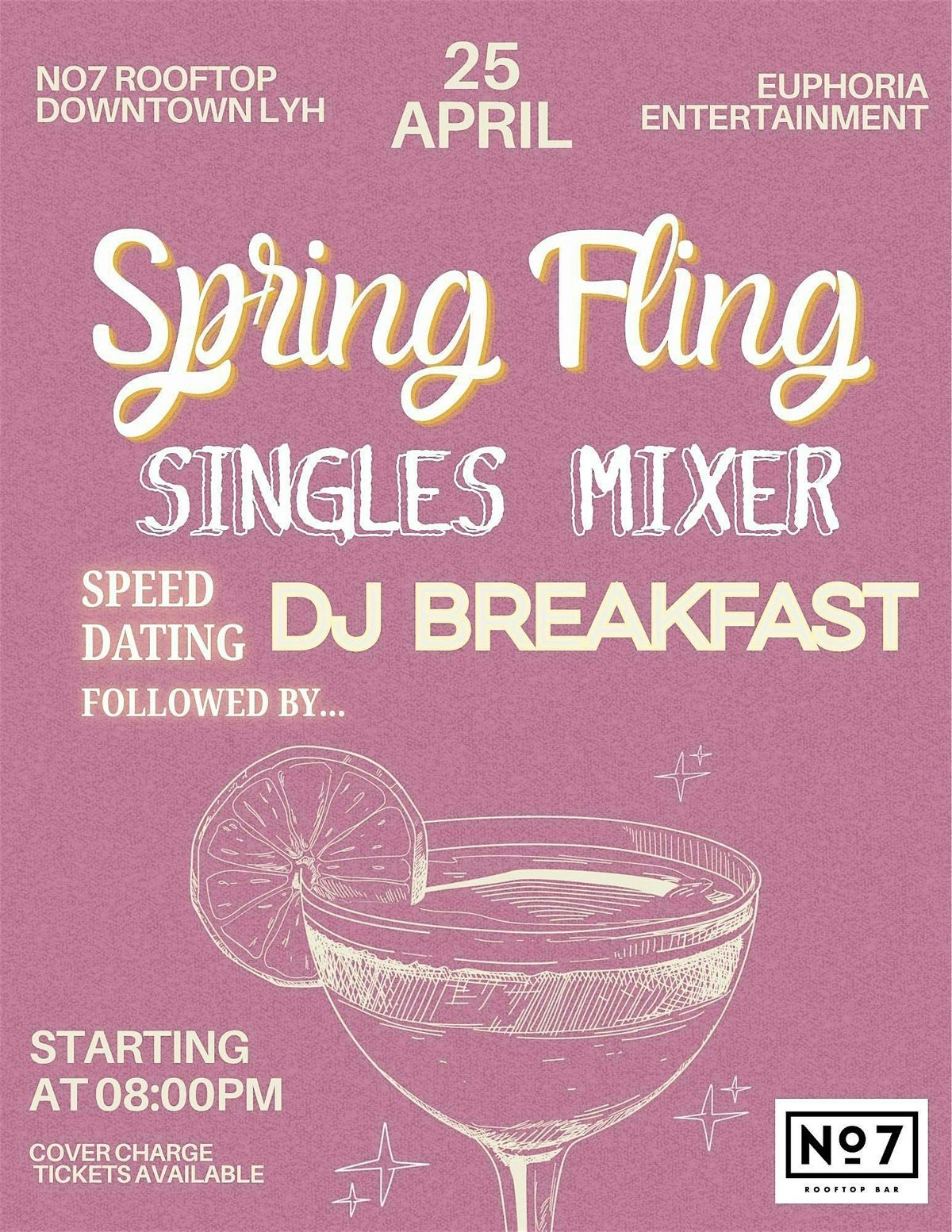 Spring is here, and it's the perfect time to meet new people! Join us at No7 Rooftop Bar for our Spring Fling - Singles Mixer on Saturday, April 25th at 8:00PM.