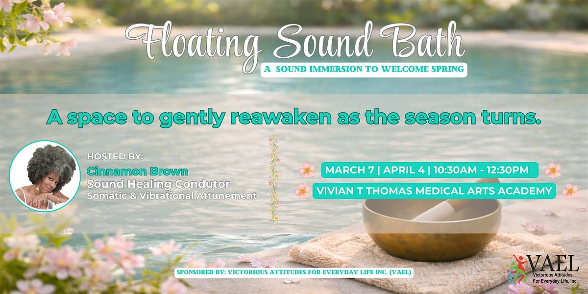 Join us for an unforgettable sound-healing bath experience at the Vivien T. Thomas Medical Arts Academy. Immerse yourself in the soothing sounds of crystal singing bowls, drums, gongs, and harp while you float effortlessly in a heated pool or relax poolside. This tranquil experience, enhanced with gentle breathwork, will melt away stress, rejuvenate your mind, and restore balance to your body.
