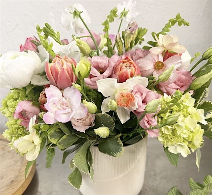 Cost: $165/ person. Fee includes all flowers, supplies, vase, private workshop. Tickets are non-refundable. Space is limited.