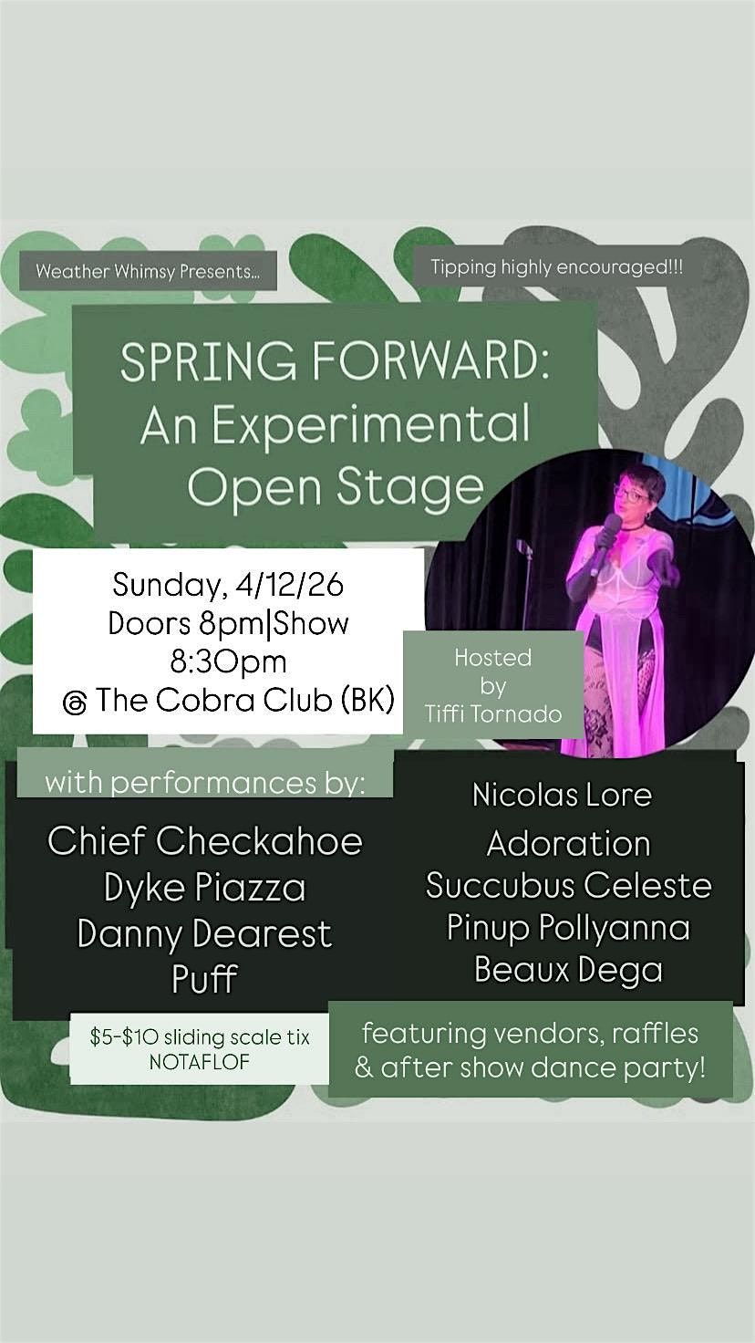 Join us for a night dedicated to shaking off the winter and embracing all the growth spring has to offer at The Cobra Club on Sunday, April 12, 2026- doors at 8:00 PM| Show 8:30PM.