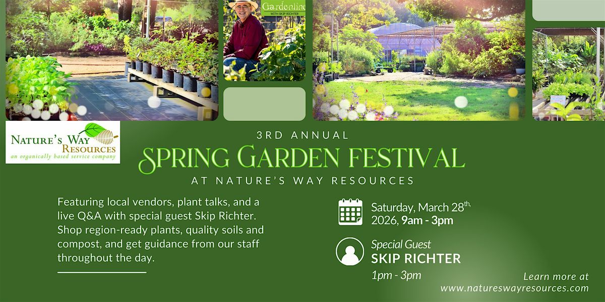 Celebrate the start of the spring gardening season at our 3rd Annual Spring Garden Festival at Nature’s Way Resources in Conroe. This community-focused event brings together local vendors, gardeners, and plant lovers for a full day of learning, shopping, and seasonal inspiration.