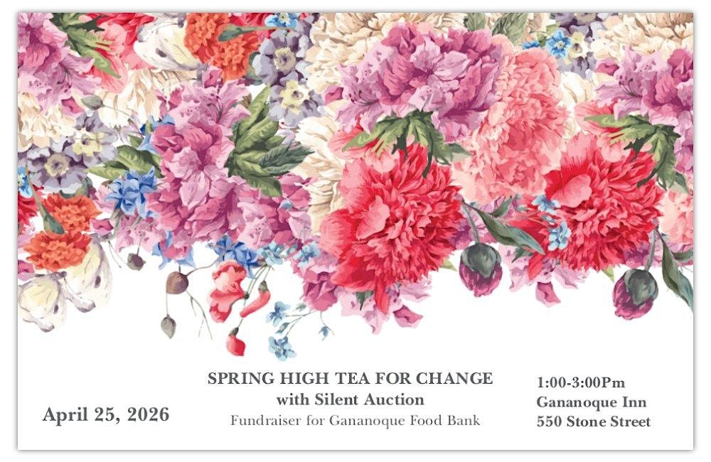 Spring High Tea for Change is a semi-formal, floral-inspired benefit event to raise money and food donations for the Gananoque Food Bank as well as acknowledge all of their hard work in the community.